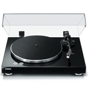 Este tocadiscos ofrece tres velocidades de reproducción: 33 1/3, 45 y 78 RPM, para adaptarse a una amplia variedad de discos. Cuenta con un motor de transmisión por correa para una reproducción suave y estable. Incluye un receptor Bluetooth integrado que te permite conectar dispositivos de forma inalámbrica. Viene equipado con altavoces estéreo de rango completo integrados para una experiencia auditiva inmediata y envolvente. Dispone de un conector para auriculares y una entrada auxiliar para una mayor flexibilidad de escucha. Escucha tus discos favoritos sin molestar a nadie más utilizando la entrada auxiliar para conectar tus auriculares. Reproduce discos de 7″, 10″ o 12″ con facilidad. Se incluye un adaptador para reproducir singles de 7″. La función de Bluetooth de dos vías te permite conectar tu teléfono con Bluetooth a los altavoces integrados de tu tocadiscos y disfrutar de tu música digital durante todo el día. También puedes conectar un altavoz Bluetooth externo para un sonido amplificado. Los dos altavoces integrados se encuentran detrás de la elegante rejilla en la parte delantera del tocadiscos, proporcionando un sonido claro y potente.
