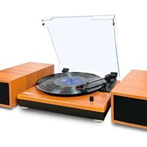 Este giradiscos estéreo ofrece tres velocidades de reproducción: 33/45/78 RPM para adaptarse a una variedad de discos. Además, cuenta con receptor Bluetooth para una fácil conectividad inalámbrica. Incorpora un puerto USB para reproducción y decodificación, así como un lector de tarjetas SD. Con su conmutador de auto-apagado, proporciona un funcionamiento conveniente y eficiente. También incluye una entrada auxiliar mini-jack, dos altavoces integrados, salida RCA y toma para auriculares, ofreciendo una versátil experiencia auditiva.