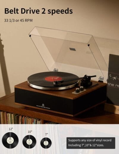 Experimenta una calidad de sonido excepcional gracias al rendimiento de alta gama del Tocadiscos Angels Horn HP-H019-OR. Su estructura de madera bien procesada y altavoces estéreo integrados ofrecen un sonido cálido y envolvente, sin distorsión ni pérdida de fidelidad. Disfruta de la autenticidad de los instrumentos y detalles sonoros que otros modelos no pueden igualar.