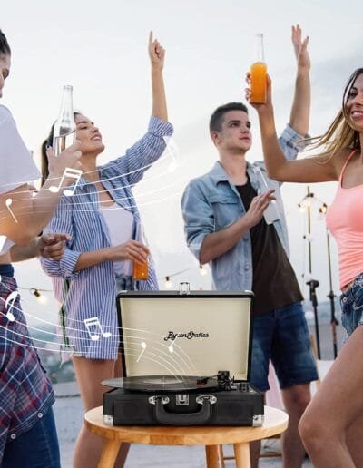 Descubre más sobre la portabilidad del tocadiscos ByronStatics Maleta Vintage