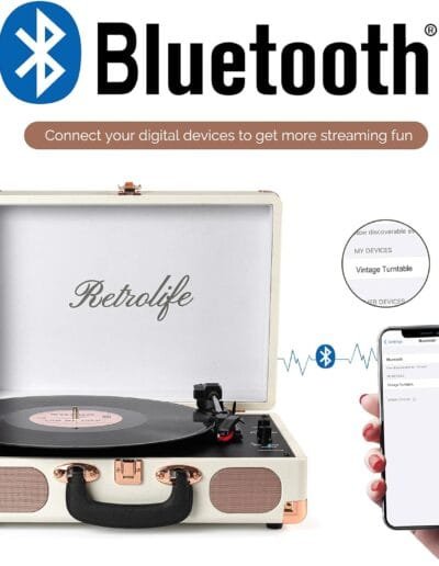 Con su conectividad Bluetooth, el tocadiscos de vinilo vintage portátil Retrolife te permite transmitir música desde tus dispositivos compatibles de forma inalámbrica. Ya sea que estés reproduciendo vinilos o escuchando música en streaming, disfrutarás de una calidad de sonido excepcional en todo momento.