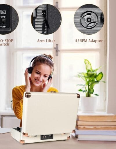 Gracias a su diseño robusto y su base antideslizante, el tocadiscos de vinilo vintage portátil Retrolife ofrece una estabilidad mejorada durante la reproducción. Esto reduce las vibraciones no deseadas, asegurando una reproducción suave y sin interrupciones.