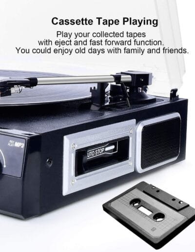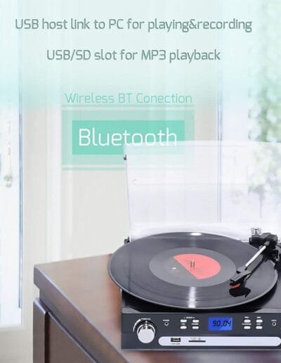 Con la función Bluetooth del plato giratorio, puedes conectar fácilmente tus dispositivos externos y disfrutar de una experiencia auditiva inalámbrica. Ya sea que estés escuchando vinilos clásicos o transmitiendo música desde tu dispositivo, este tocadiscos te ofrece una calidad de sonido excepcional en todo momento.