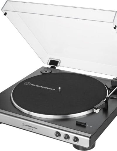 Con el tocadiscos de correa totalmente automático AT-LP60XUSB podrás disfrutar de la experiencia de audio de alta fidelidad de tus vinilos directamente o convertirlos a formato digital. El AT-LP60XUSB reproduce discos de 33-1/3 y 45 RPM y está equipado con una salida USB que permite la conexión directa al ordenador.