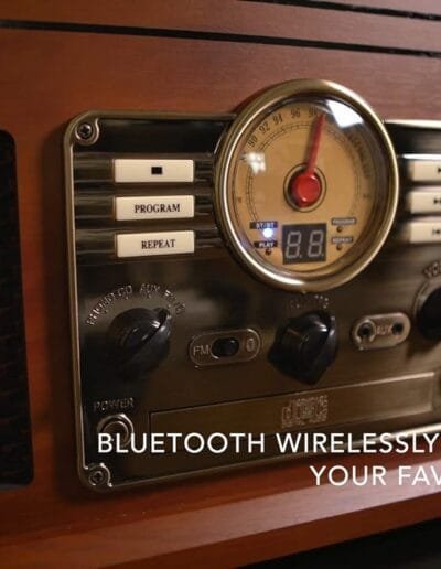 Explora cómo la tecnología Bluetooth del Tocadiscos Victrola Nostalgic VTA-200B-MAH-INT garantiza una transmisión de audio sin interrupciones y de alta calidad para una experiencia auditiva óptima.