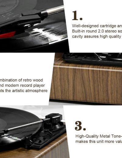 Disfrutar de la experiencia musical de décadas pasadas mientras se disfruta de la conveniencia de la tecnología moderna es solo una de las razones por las que el Tocadiscos FYDEE Vintage es una adición digna a cualquier hogar. La calidad de sonido incomparable, el diseño cuidadosamente elaborado y las características excepcionales lo convierten en una opción sobresaliente en el mercado de los tocadiscos.