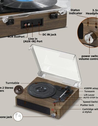 A pesar de su apariencia elegante y sofisticada, el Tocadiscos FYDEE Vintage es sorprendentemente fácil de instalar y utilizar. Las instrucciones claras y la interfaz intuitiva garantizan que incluso los usuarios menos técnicos puedan comenzar a disfrutar de su música favorita en minutos. Desde la configuración inicial hasta la operación diaria, este tocadiscos está diseñado para simplificar cada paso del proceso.