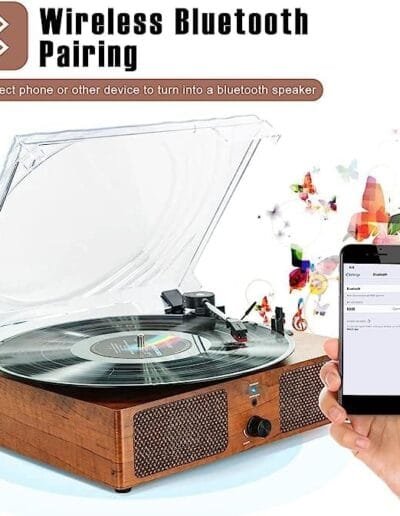 Estos tocadiscos ofrecen conectividad Bluetooth, lo que te permite transmitir música desde dispositivos digitales como teléfonos inteligentes, tabletas o computadoras portátiles de forma inalámbrica, brindando una experiencia de reproducción versátil.