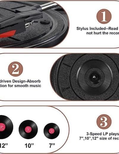 Los Tocadiscos de Vinilo Vintage de Mersoco están diseñados con características prácticas que hacen que su uso sea simple y sin complicaciones. Desde funciones automáticas hasta materiales duraderos, estos tocadiscos están diseñados para ofrecer una experiencia de usuario óptima.